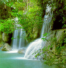 น้ำตกเอราวัณ เป็นน้ำตกที่มีชื่อเสียงมากที่สุดแห่งหนึ่งของประเทศ ด้วยอาณาเขตอันกว้างขวาง