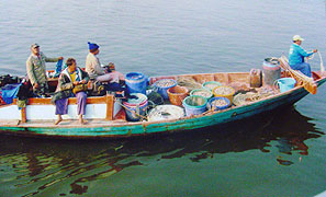 พอดีพบเรือที่เขานำหอยพิมสด ๆ มาขายกันริมเขื่อนหน้าวัด และขายหมดในพริบตา